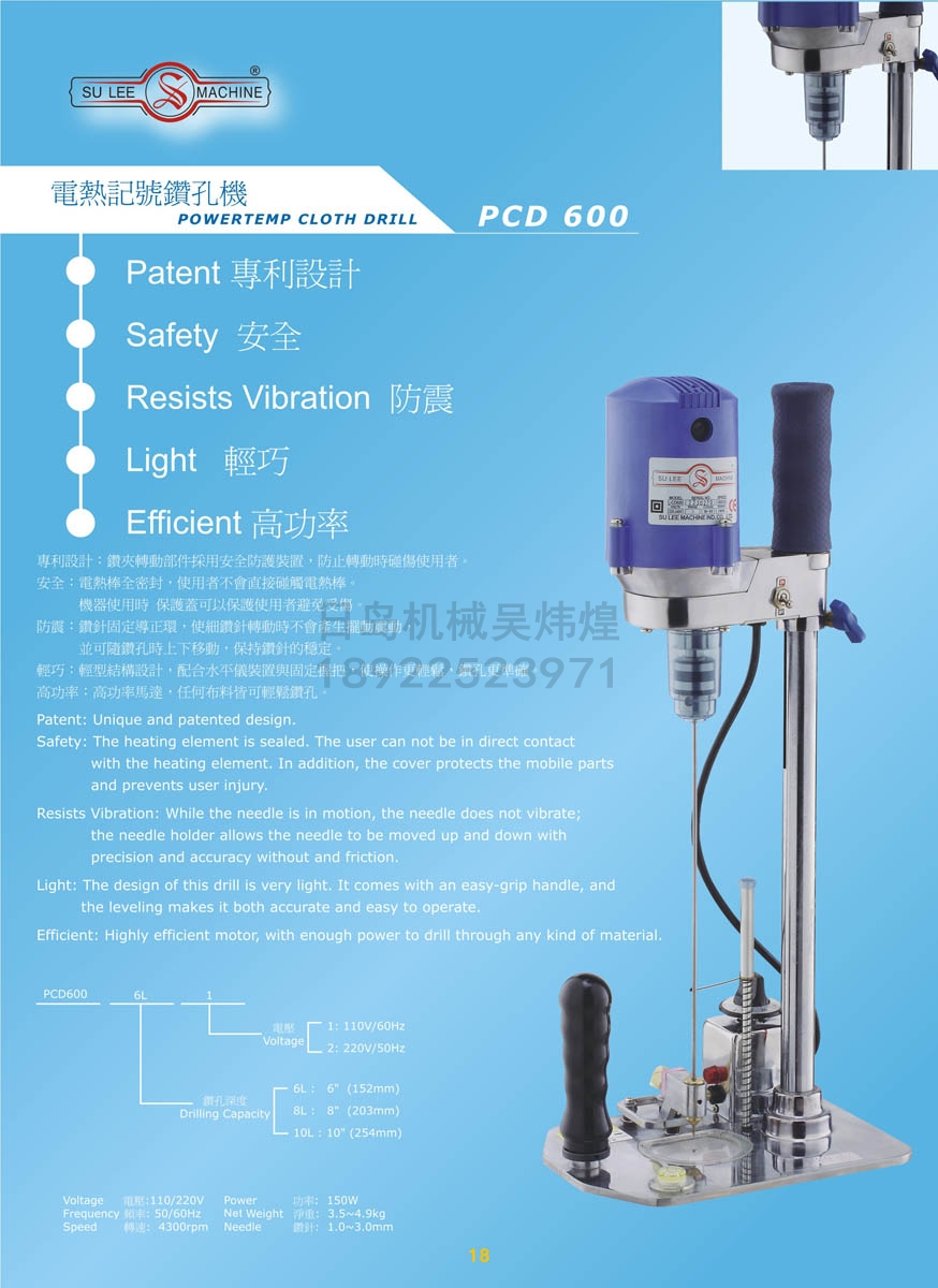 鑽夾轉動(dòng)部件採用安全防護裝置,防止轉動(dòng)時(shí)碰傷使用者。另鑽針固定導正環(huán),使細鑽針轉動(dòng)時(shí)不會(huì )產(chǎn)生震動(dòng),並可隨鑽孔時(shí)鑽針的上下移動(dòng),保持鑽針的穩定,另輕巧結構設計,使操作更輕鬆、鑽孔更準確。