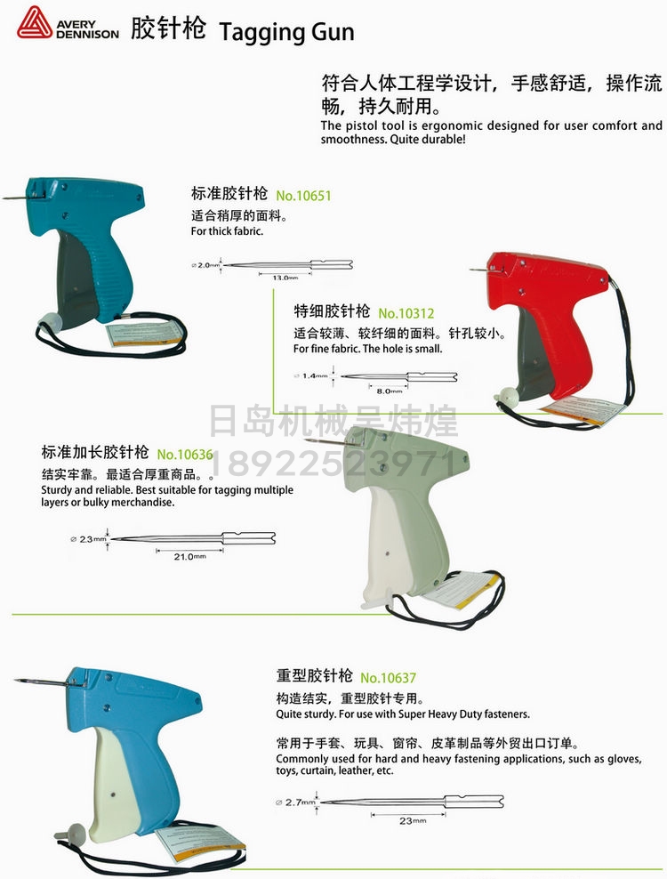 艾利丹尼森產(chǎn)品為世界500強企業(yè),最早創(chuàng )立梯形膠針及膠針機的單位,早在60年代起就已開(kāi)始發(fā)明創(chuàng )立其他膠針。美國Avery Dennison原創(chuàng )和經(jīng)典產(chǎn)品! 根據人體工程學(xué)設計,輕觸扳機即可打出膠針,操作安全舒適。 |