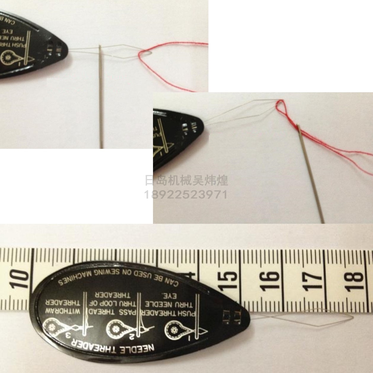 1.將穿針器的鐵絲往針眼裏順 2.把線(xiàn)的一頭穿到鐵絲的菱形裏面 3.往外拉穿線(xiàn)器,直到線(xiàn)的一頭跑出針眼為