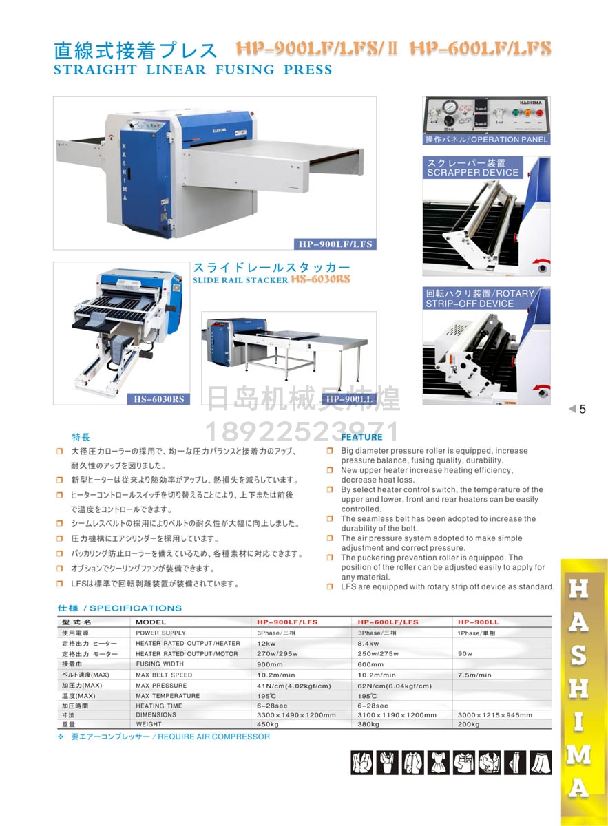 HASHIMA HP-900LF / HP-600LF STRAIGHT LINEAR FUSING PRESS