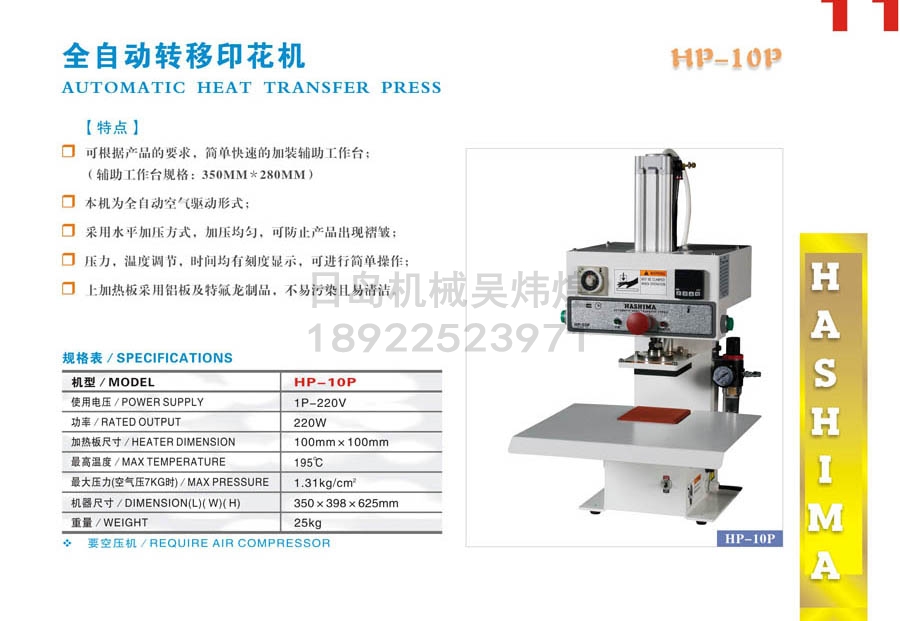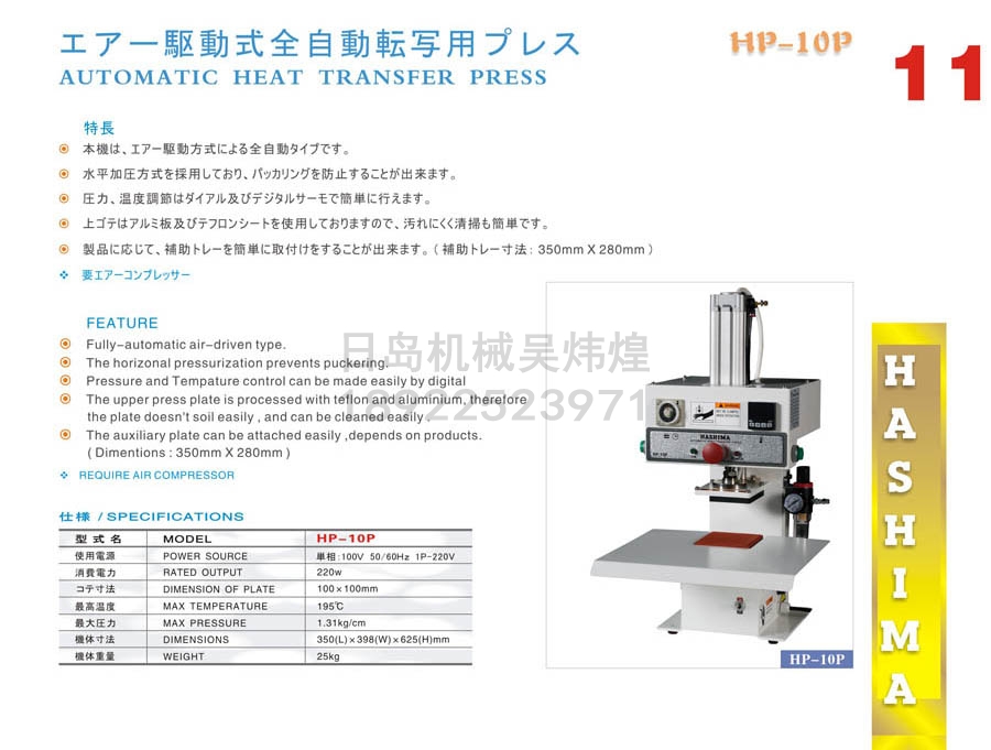 HASHIMA HP-10P AUTOMATIC AIR TYPE HEAT TRANSFER PRESS