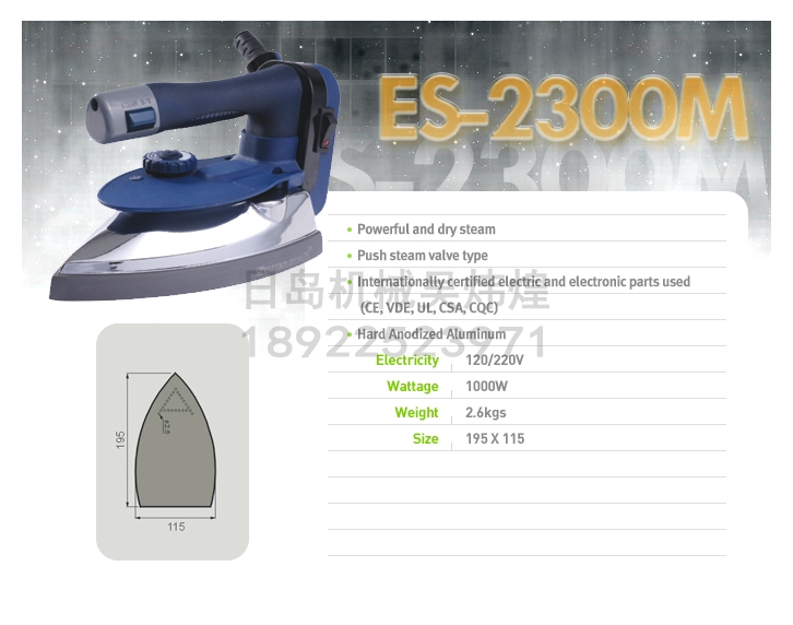 產(chǎn)品名 SILVER STAR銀星牌電加熱燙斗/熨斗ES-2300M