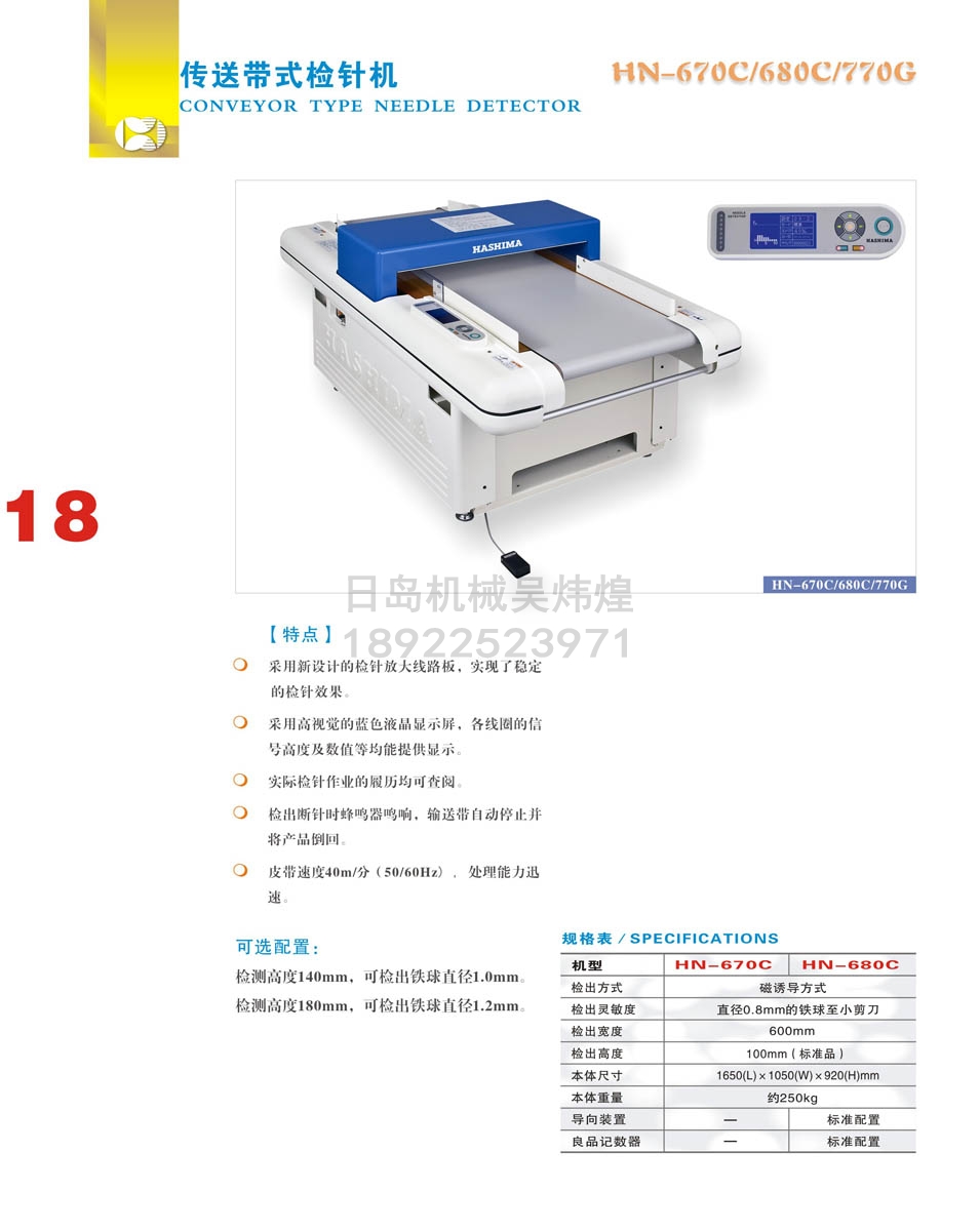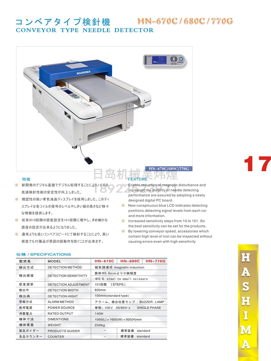 • 羽島HASHIMA HN-670C傳送帶式檢針機