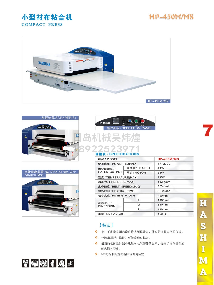• 羽島HASHIMA HP-450M/MS小型襯布粘合機