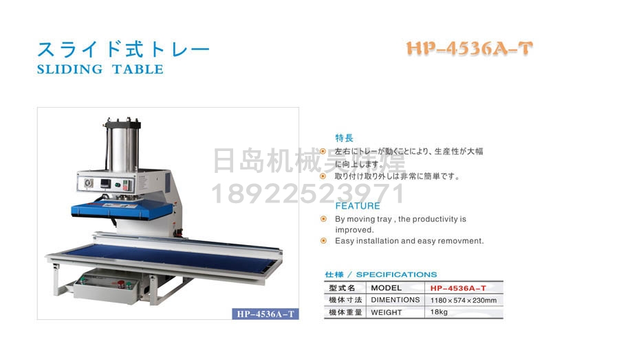 • 羽島HASHIMA HP-4536A-T轉印機滑動(dòng)工作臺