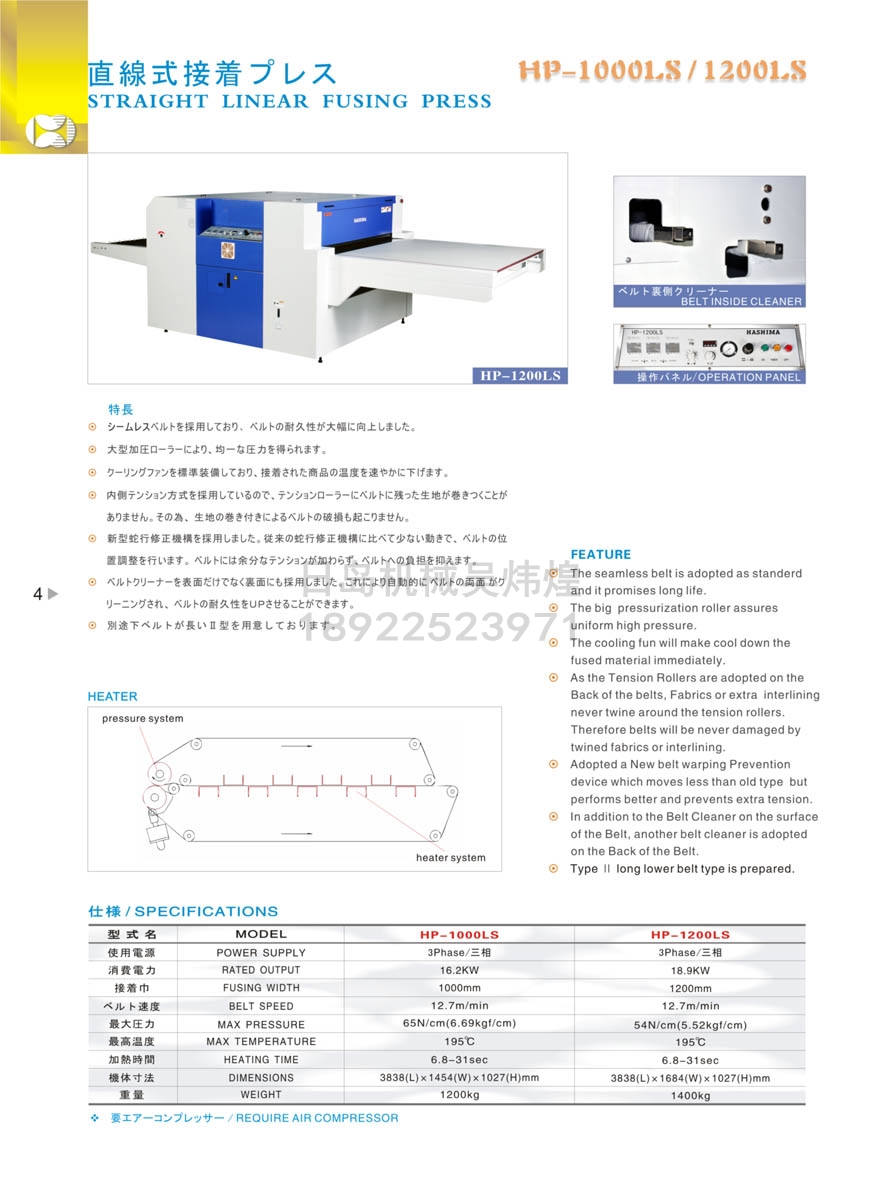 • 羽島HASHIMA HP-1000LS / HP-1200LS 直線(xiàn)式襯布粘合機