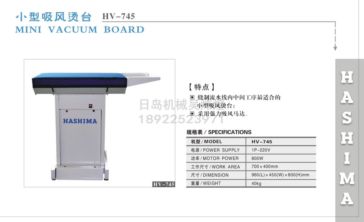特點(diǎn) 縫制流水線(xiàn)內中間工序最適合的小型吸風(fēng)燙臺;